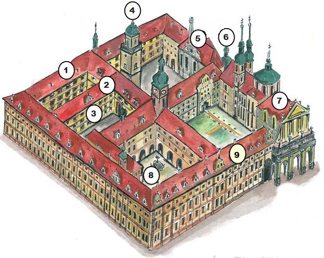 Das Kolleg-Gebäude der Jesuiten verteilt sich um fünf Höfe, der Orden baut drei Kirchen: