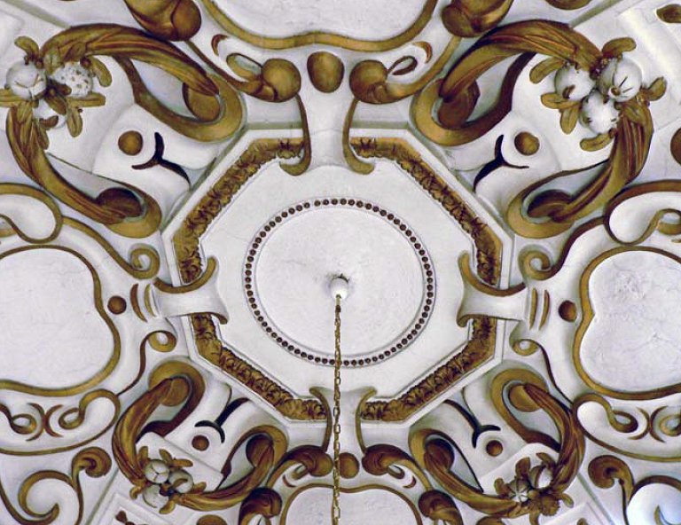 heute besitzt der Karmeliten-Orden das Gebäude wieder. Im Inneren sind die Stuckdekorationen aus der