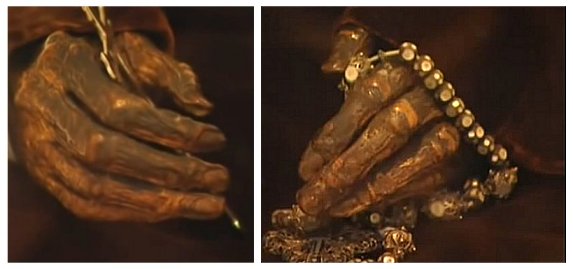 versteckt, wo die Mumie in ausgezeichnetem Zustand bis heute in einer Glasvitrine sitzt -