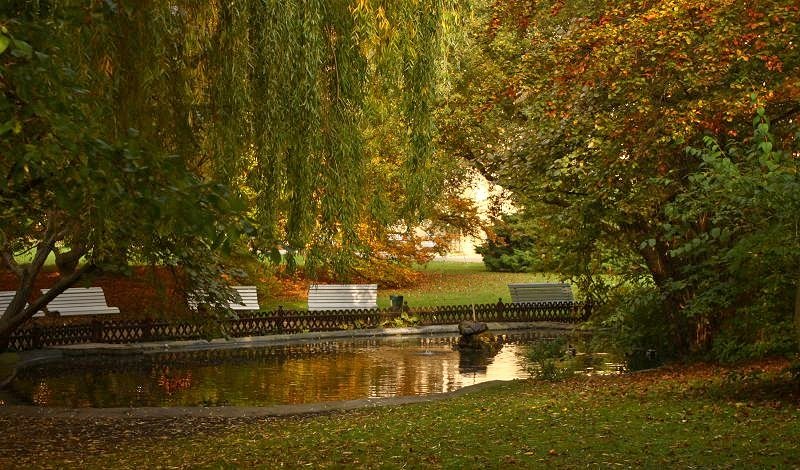 Angelegt als Bischofgarten, später dem Kloster der Karmelitinnen angegliedert, die Arkaden mit Nischen um den Garten bauen. Es soll ein Garten Eden werden für Kontemplation und Ruhe, in vier Quadrate eingeteilt - Symbol des Kreuzes, in der Mitte ein Brunnen - Symbol für die Quelle des Lebens. Dann in einen englischen Garten umgewandelt, 1919 verstaatlicht und ab 1954 öffentlich zugänglich. Ein künstlicher Teich, Pfauen, moderne Skulpturen, an die Klosterfront eine Sonnenuhr gemalt ...